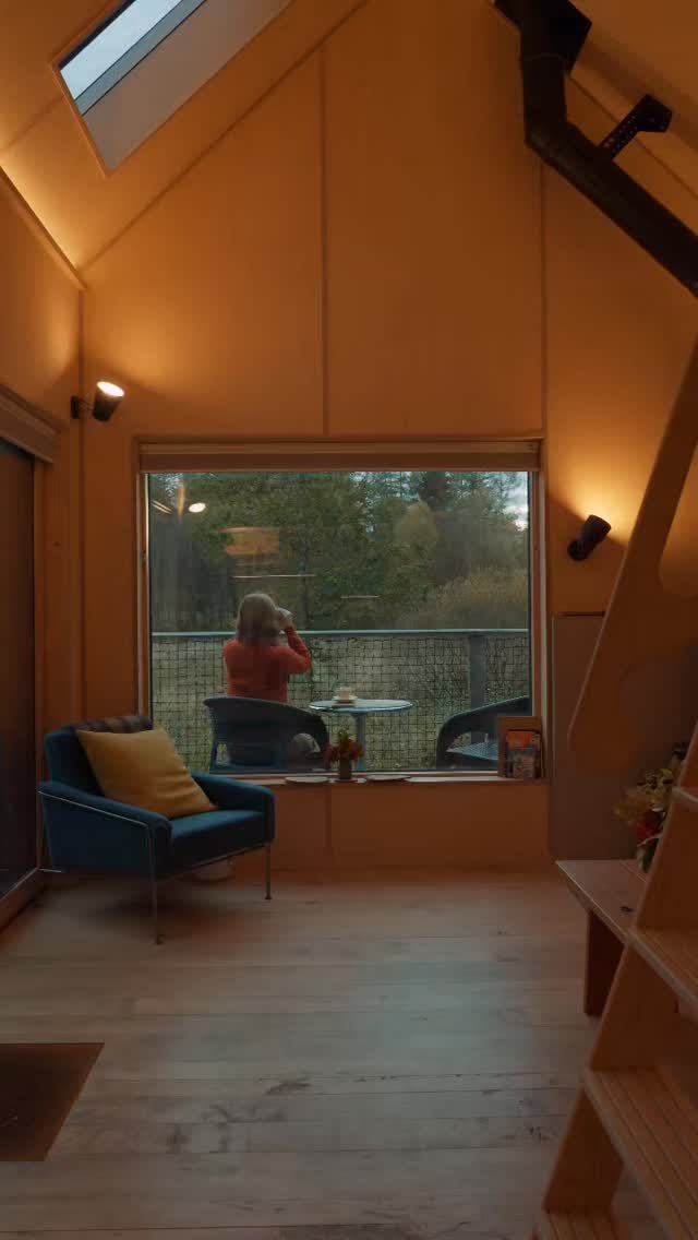 Guests can enjoy views of the wild meadows from the private deck and observe the night sky through large south-facing windows. Each bothy benefits from a cosy sleeping gallery, with sustainably made duvets that mimic the warmth and feel of down; a fully functional modern bathroom; stylish kitchen space with hob, oven and fridge; a Danish Morso woodburning stove and loveseat sofa with snug skyeskns sheepskin. Outside, an open fire pit is perfect for spending long nights roasting dinner or toasting marshmallows.